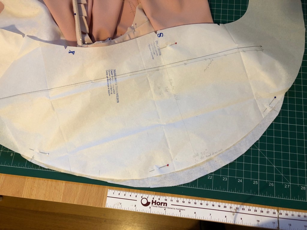 I thought I would play with elongating the flounce regardless of the first muslin – but it was incredibly challenging to actually better the way the original pattern piece sat. Marfy Drafting = 1, Me = 0. In the end, stubborn ol’ me just added a small amount for the sake of feeling like I’d ‘won’.