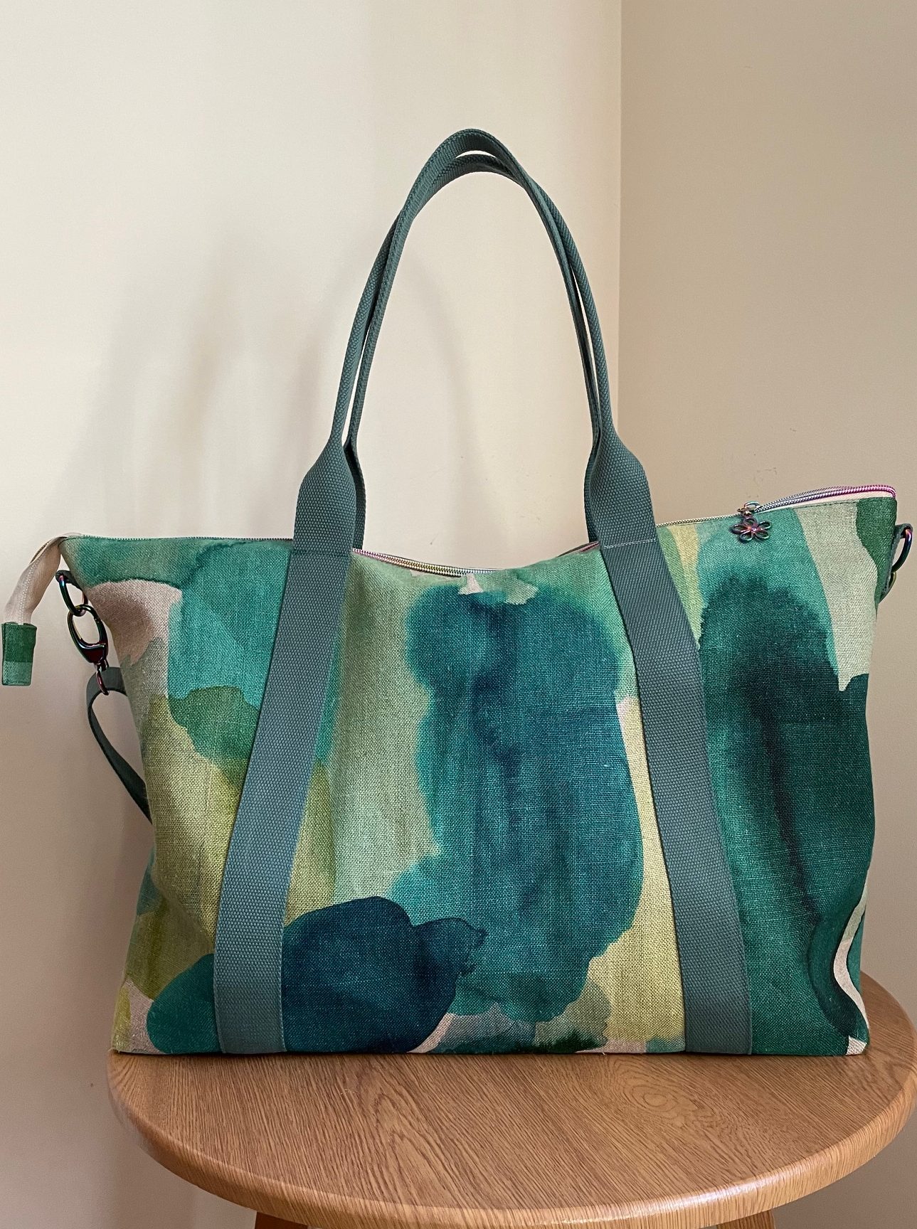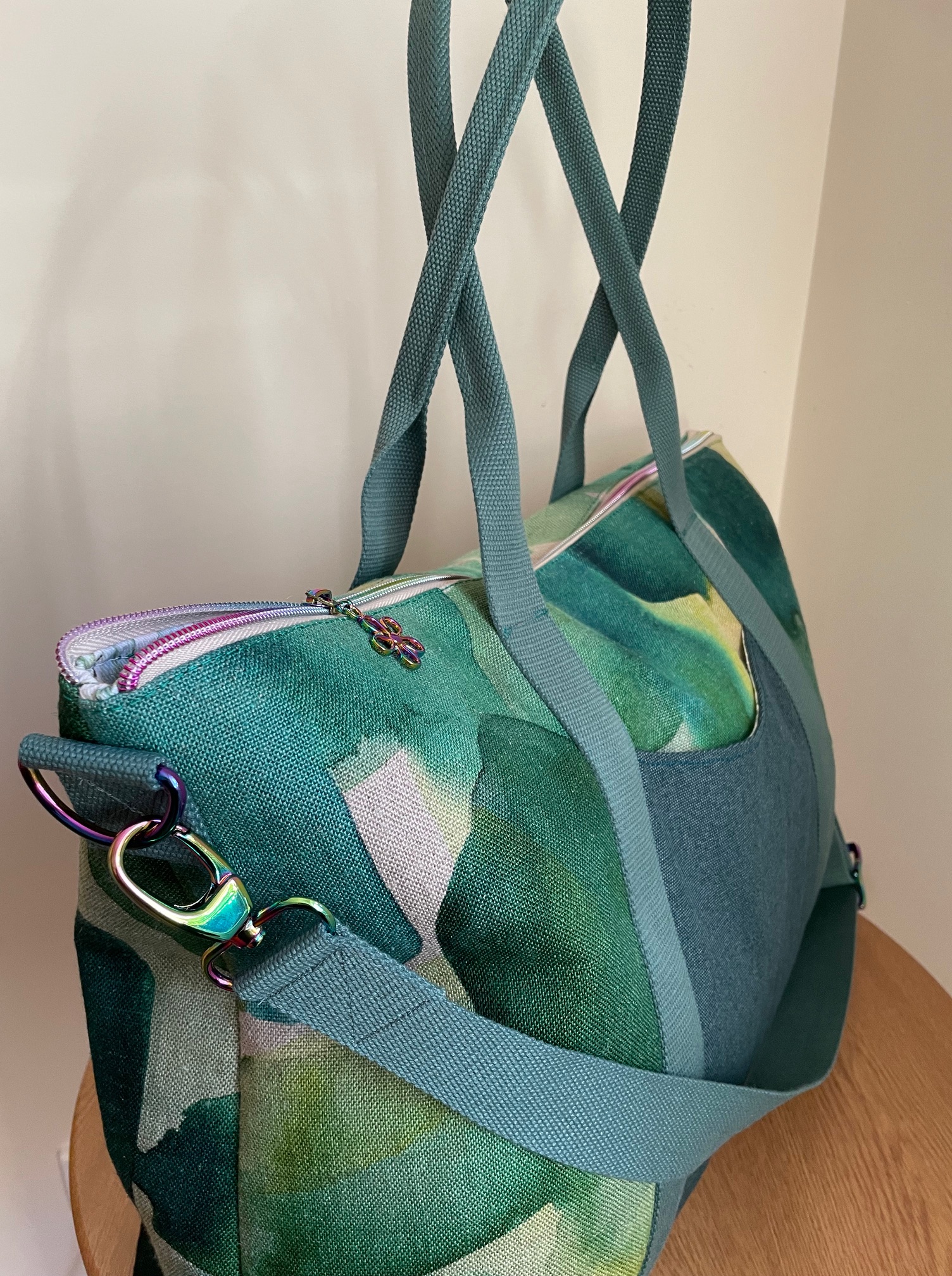 And it all started after I saw Liz’s Oxbow tote (@_busylizzie) in a solid dopamine hit of hot pink and red Marimekko fabric. I’d been using my original nappy bag (circa 2016) as my gym bag and had already been wanting to replace it with something, so this was just the bolt of ‘get-moving’ that I needed. The fact that Liz mentioned this was also the perfect carry-on luggage tote really got me moving to finish this in time for a family holiday – thanks Liz!