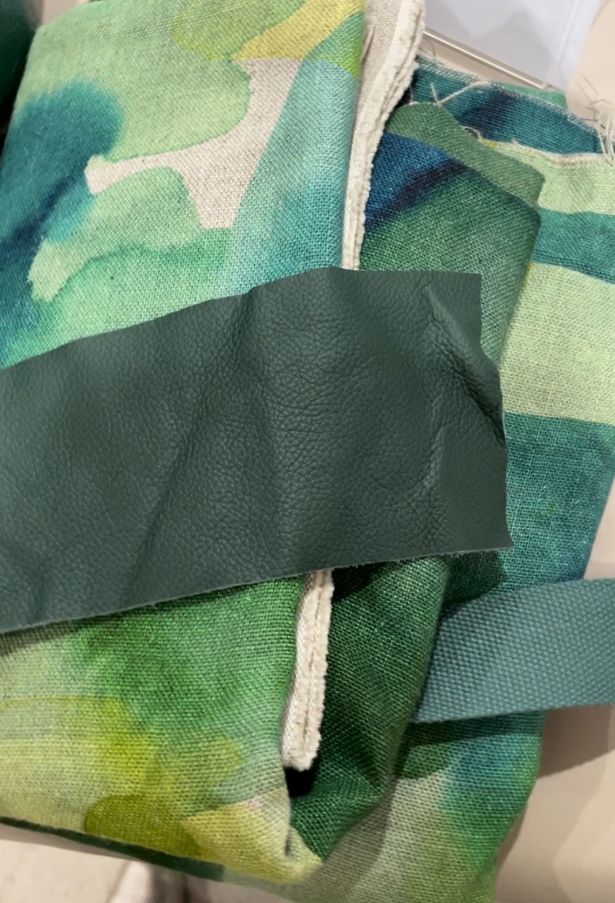 One of the features I quite like the practicality of on my now-retired nappy bag – is the leather additions on the cross body strap that stop the webbing from getting bunched up and twisting in the D-ring. Discovering that Leffler Leather is just around the corner from my house made it easy to drop in and check out their scrap bin, where I scored a perfectly matching green leather scrap to attempt to replicate this. But in the end I didn’t end up using this – largely sticking to the sewing instructions provided by Noodlehead. I love this mix and colours of materials so much that I may still make them up in another bag pattern – so there is still hope to use this perfectly matching piece of leather!