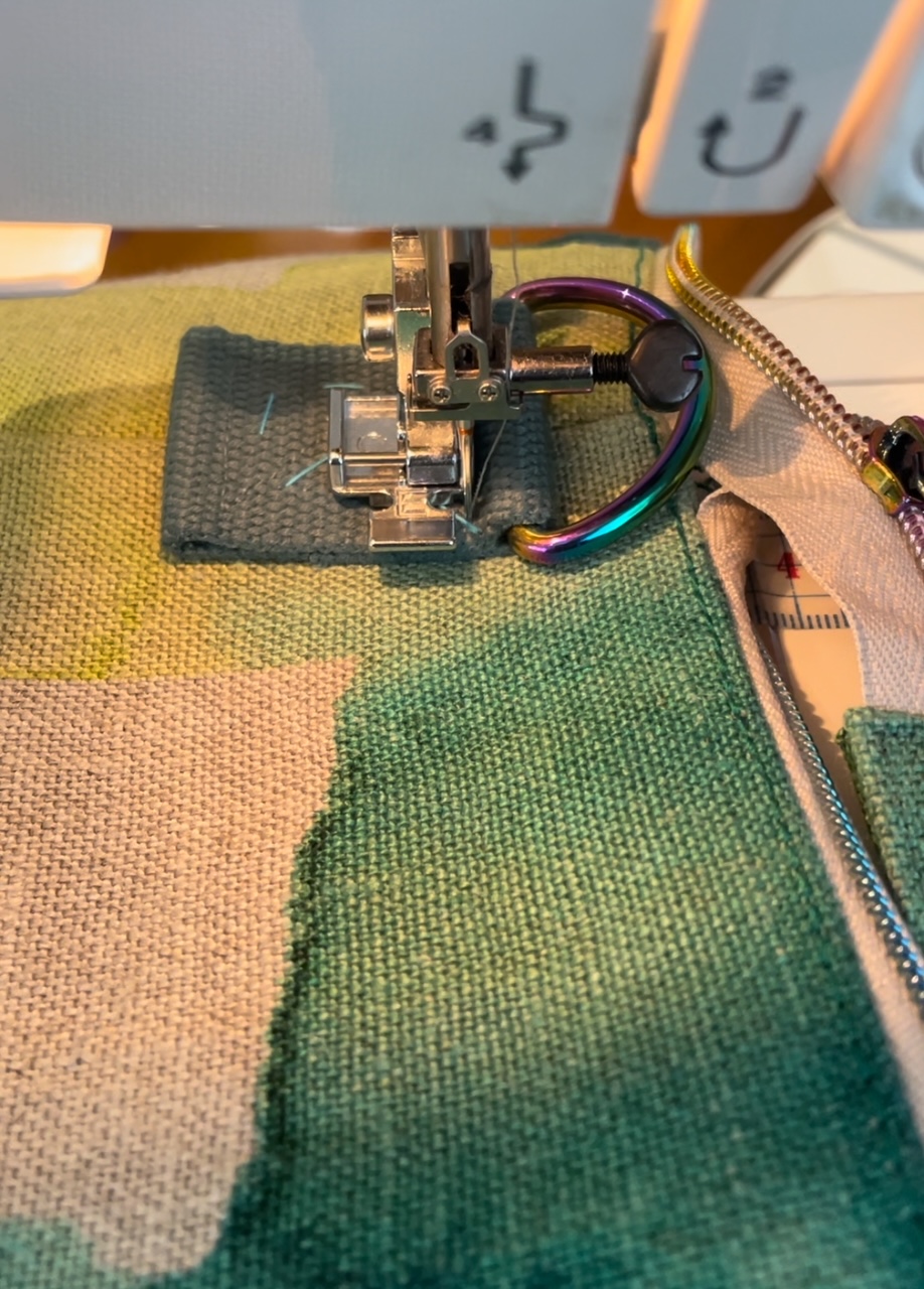 One of the big challenges with working with hardware is how close you can get the foot and needle up to the edge – always a challenge! I use a mix of the traditional dress zipper foot (ie not the invisible zip foot) and my rolled hem foot – these two seem to give the best mix of grip and ability to get the needle position right up close to where I want it to be. And yes, I do change them out mid-sewing! Basting together the ribbing then basting the ribbing onto the bag helps keep this in position as I’m working on it. One of the tricks I picked up from Noodlehead’s sewalong videos was more use off the backstitch to minimise the amount of position changes one needs to get the sewing done. Nice!