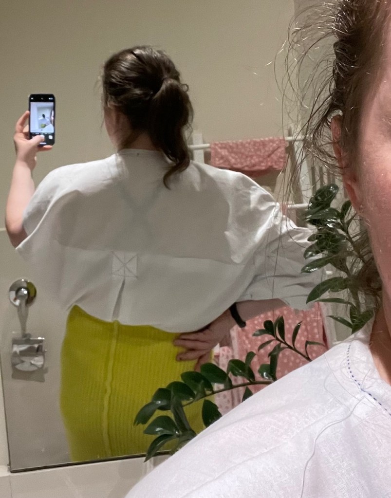 Do I think the Phen shirt is ugly? No. But as someone who grew up in the 90s – with the androgynous and dangerously skinny look being the key aesthetic – coupled with an awareness that my body did not align with this, “it wasn’t for me” – the era’s overwhelming focus on weight and size has left a number of indelible marks on me that I’ve only really been able to overcome once I hit my 30s. So the act of choosing a garment that takes up so much visual space via upping the proportions – demanding attention because it does sit outside what my eyes are used to seeing in myself – feels like an act of rebellion against the constraints I previously saw myself being restricted by.