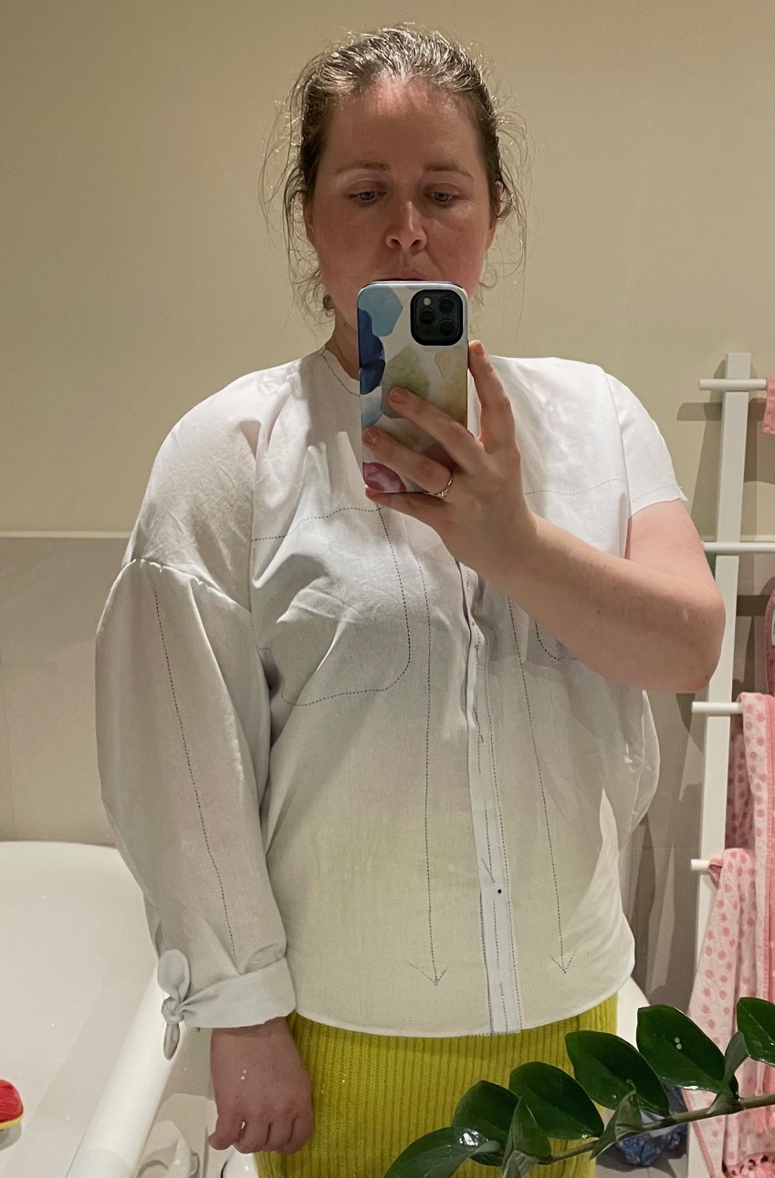 I bought this pattern mid 2024, and all of a sudden my feed was full of people wearing Phen shirts. Phen Phrends! I’ve been quite drawn to this pattern for a while – it’s a wonderfully original button up shirt remix, minus the gathering and fussiness a lot of variations-on-a-shirt seem to have (and which I struggle to pull off. I’m more an unfussy/sleek silhouette lover).