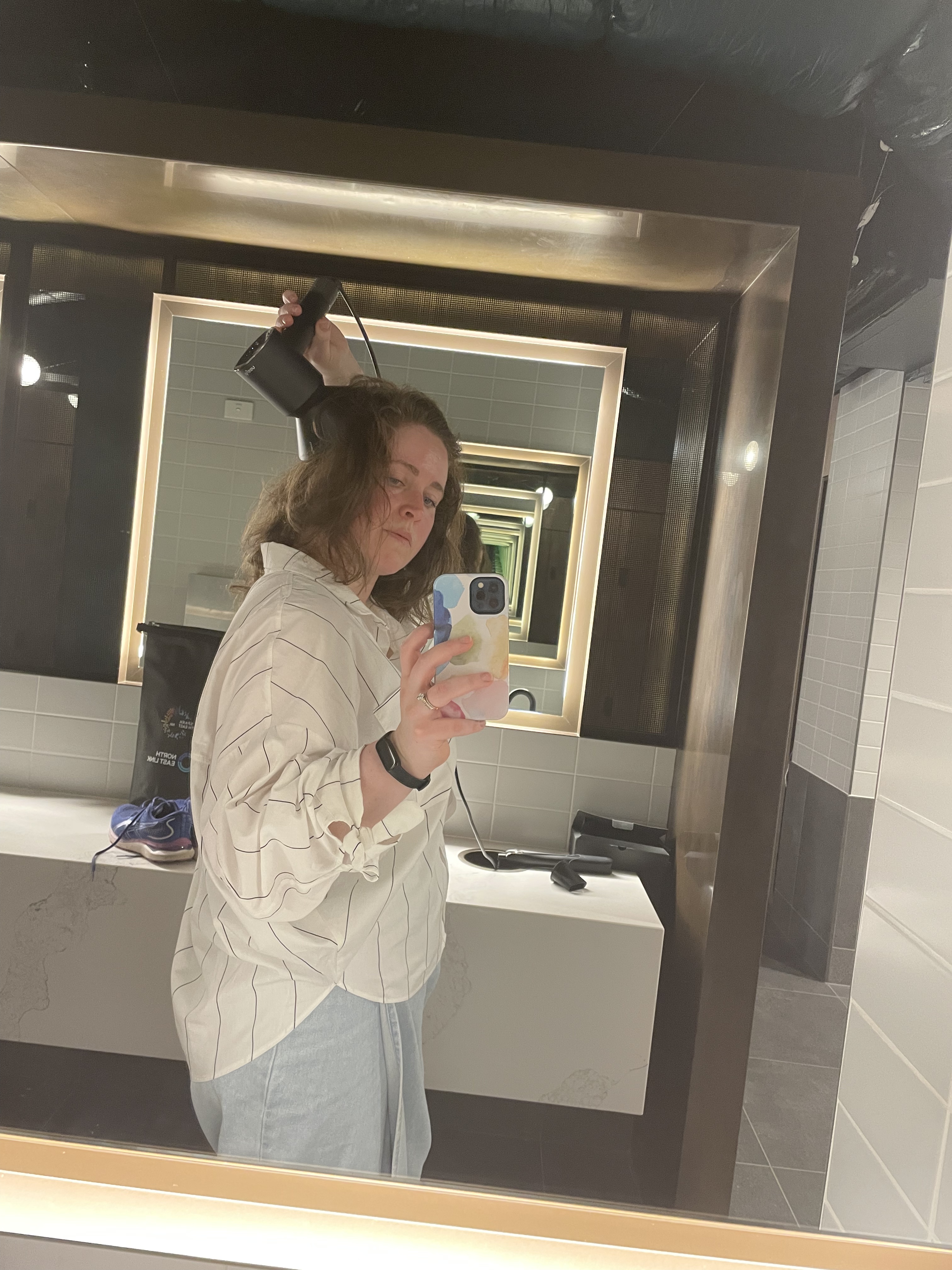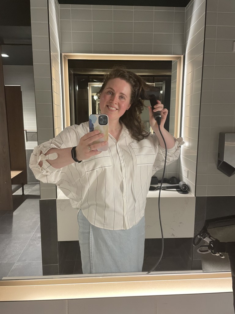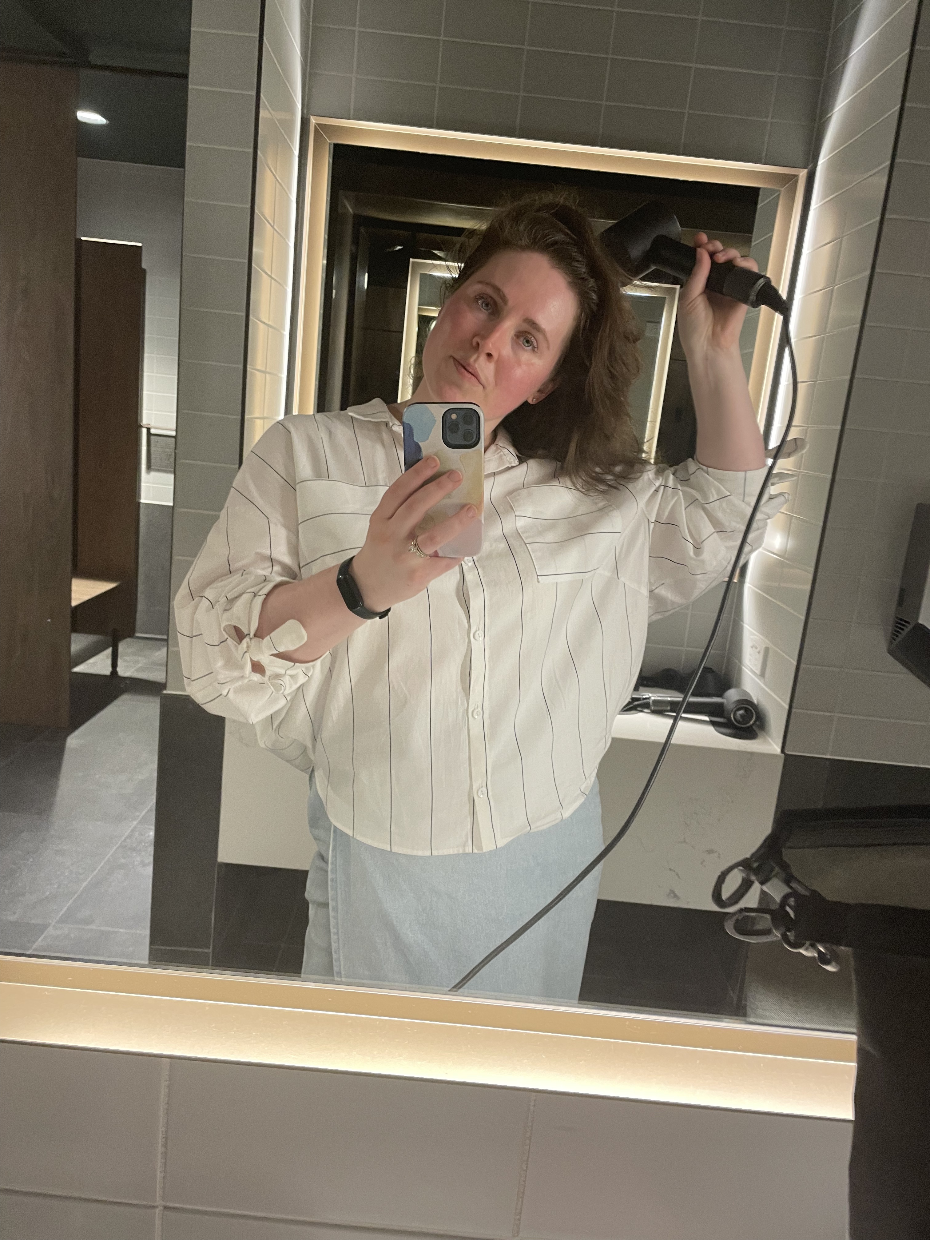 Hot tip – diffuser on the scalp after a lunchtime round in the basement gym at work does wonders if you can’t be bothered washing your hair afterwards. Doesn’t get rid of the redness in ones face however. Should have taken photos before I did my HIIT instead of after, I guess. Today, we’re going back to the days before blogs were shiny art directed stories here and returning to grainy, out of focus selfies in the mirror at home. Its the only time I have for photos.