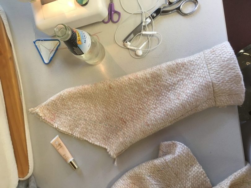 There was a lot of clapper use in the making of this jacket, due to the bulk of the fabric.