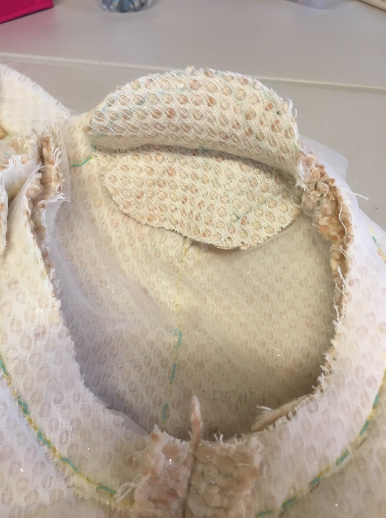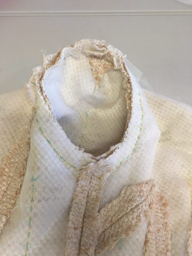 The jacket has been sewn with your standard couture techniques – silk organza underlining and thread tracing, before being basted and sewn together. It’s for the most part very ‘French Jacket’ in its construction.