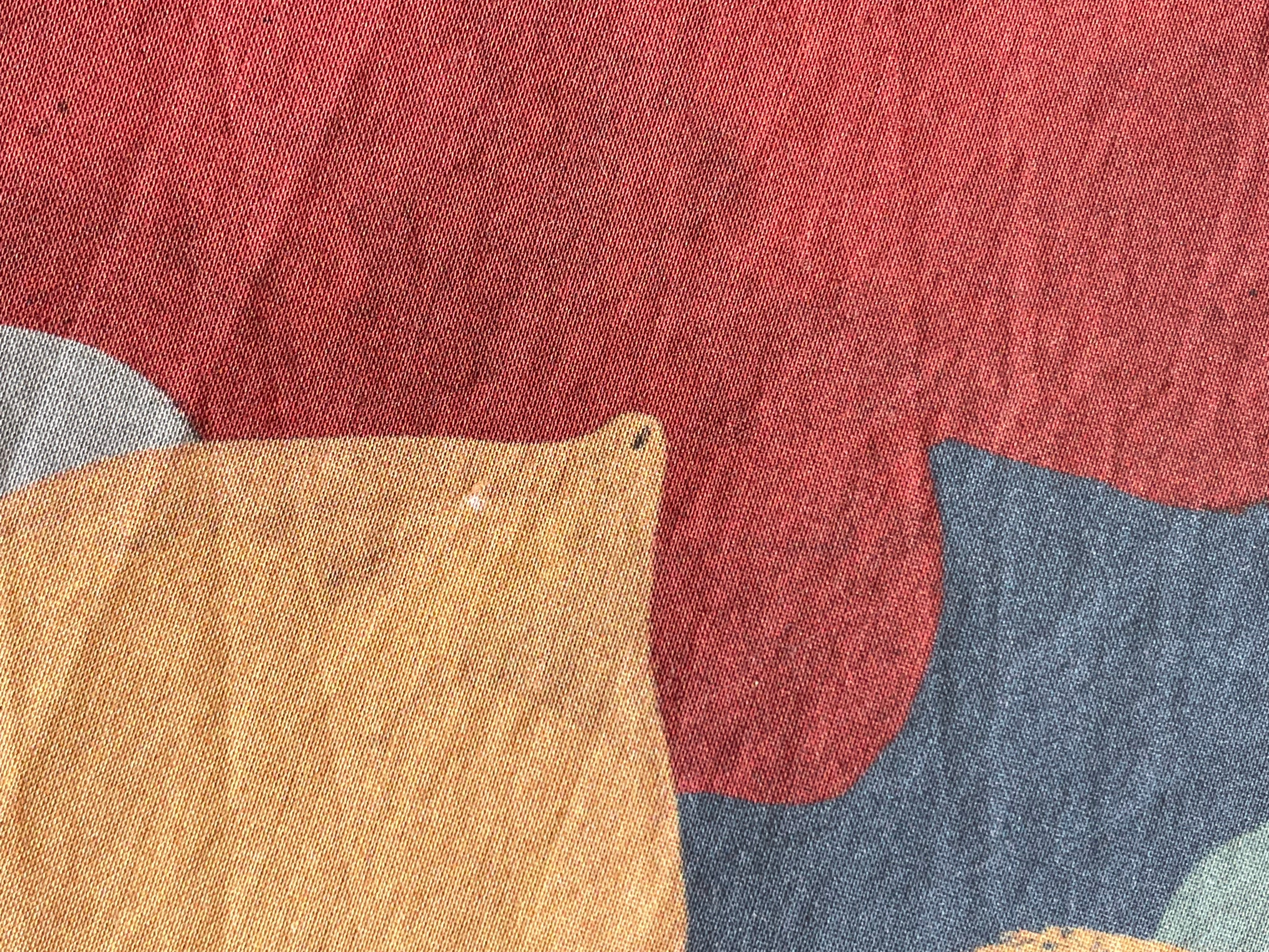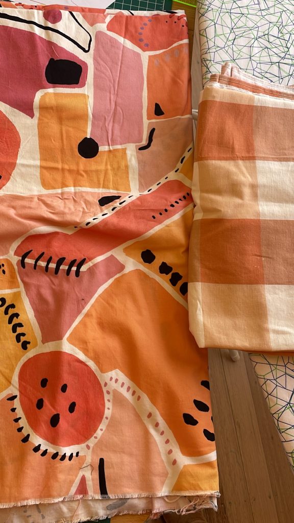 As for fabric, I was pondering two stash lengths – one I adore and am dying to sew with but ultimately decreed as a little too playful, fun and girly for my workplace (yes – it matters) – this is a Nerida Hansen largescale print (a tad on the nose too given the latest drama unfolding in that corner of the sewing interwebs). The other a Nani Iro in the print ‘As It Is’ in the pink, orange and yellow. But you already know I didn’t pick this – I made a different shirt dress from the Nani Iro!