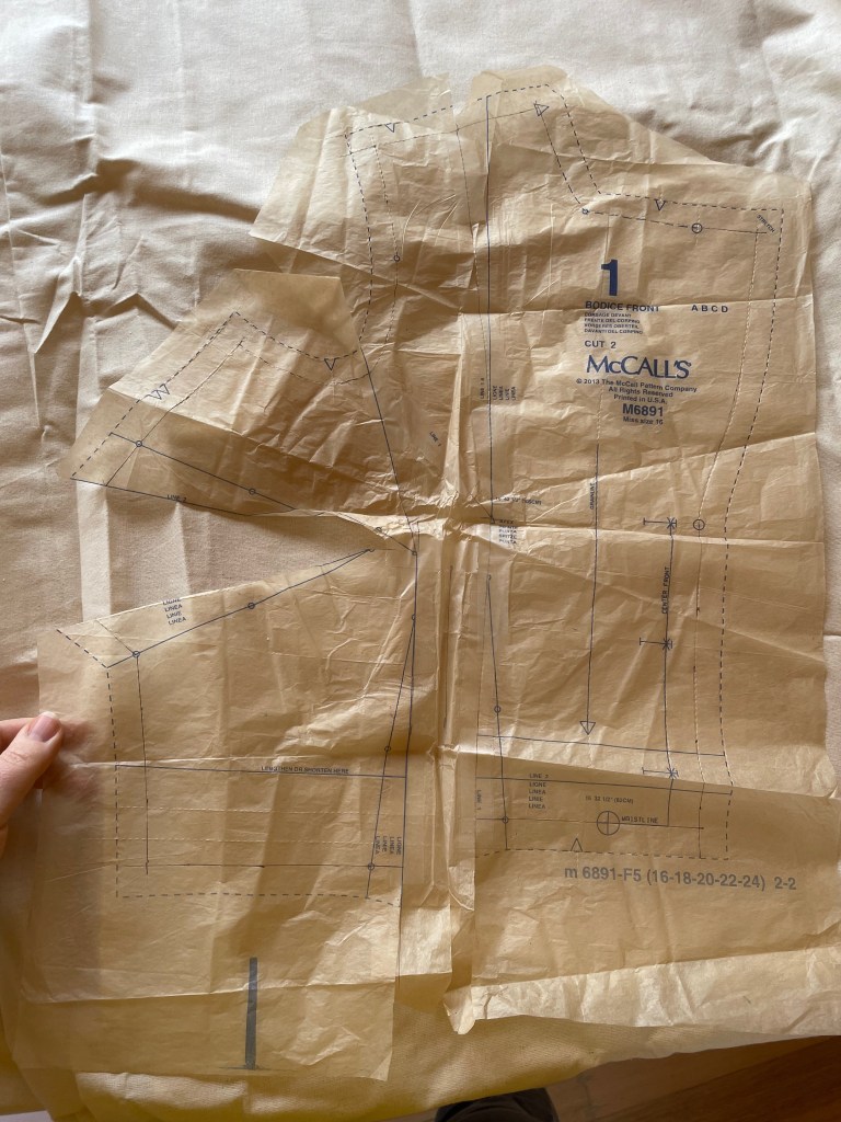 So I went hunting for the muslin I had fitted for this dress… and couldn’t find it anywhere. Odd, as I always keep the muslins I turn into patterns! So I went back to the original pattern – which I discovered I had butchered to make an FBA on (!!!) instead of tracing a new one and adjusting that. I think at the time I was just so desperate for some sewing time (I was getting some sewing time back after having my second baby, and I was hungry for it!) I ignored many of the ‘protocols’ I typically apply to myself whilst fitting a new pattern. But, between the original pattern pieces and the finished dress, I was able to recreate a new adjusted pattern to keep going forward, which is now traced onto muslin and safely archived for future use.