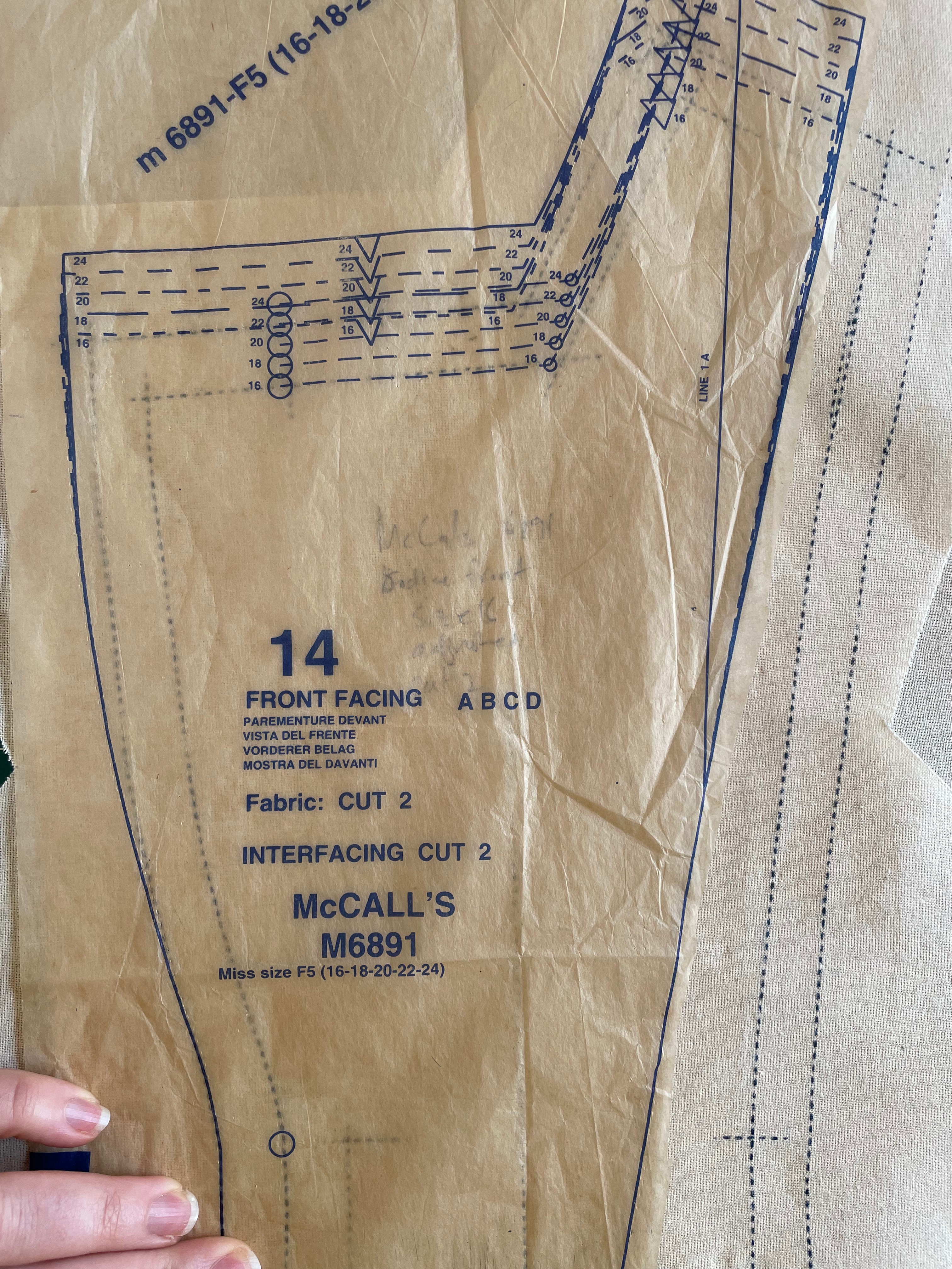 I broke with my usual protocols and used fusible interfacing to interface the facing. And I regret it immensely – you can already see bubbled texture as a result! I threw the rest of this fusible out so I wouldn’t be tempted to use it in a pinch again.