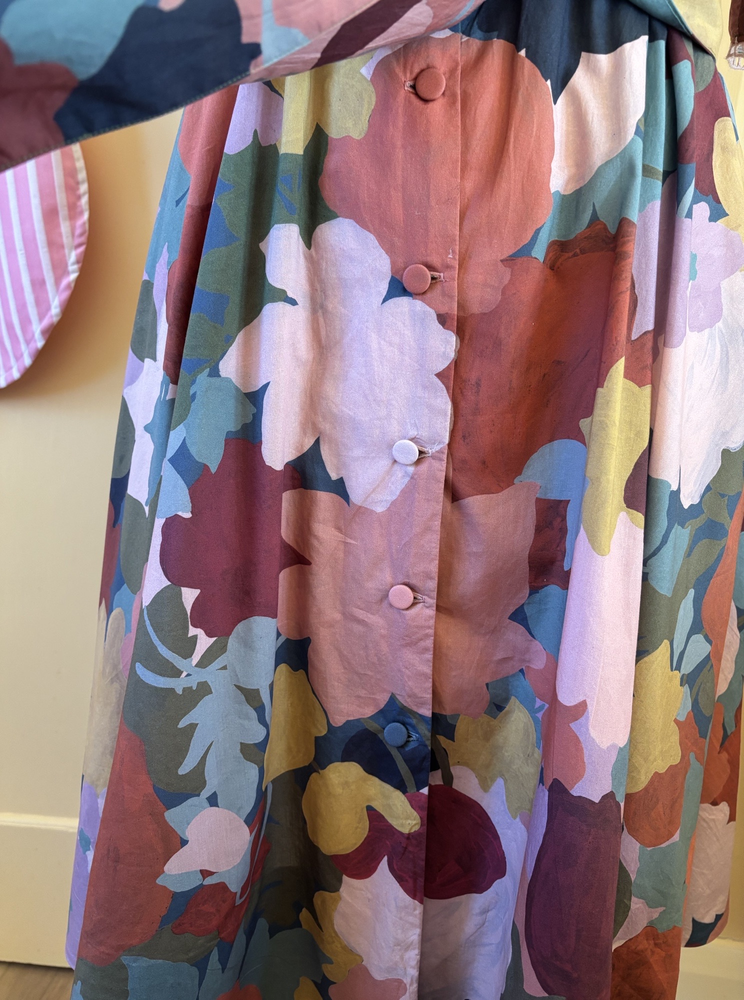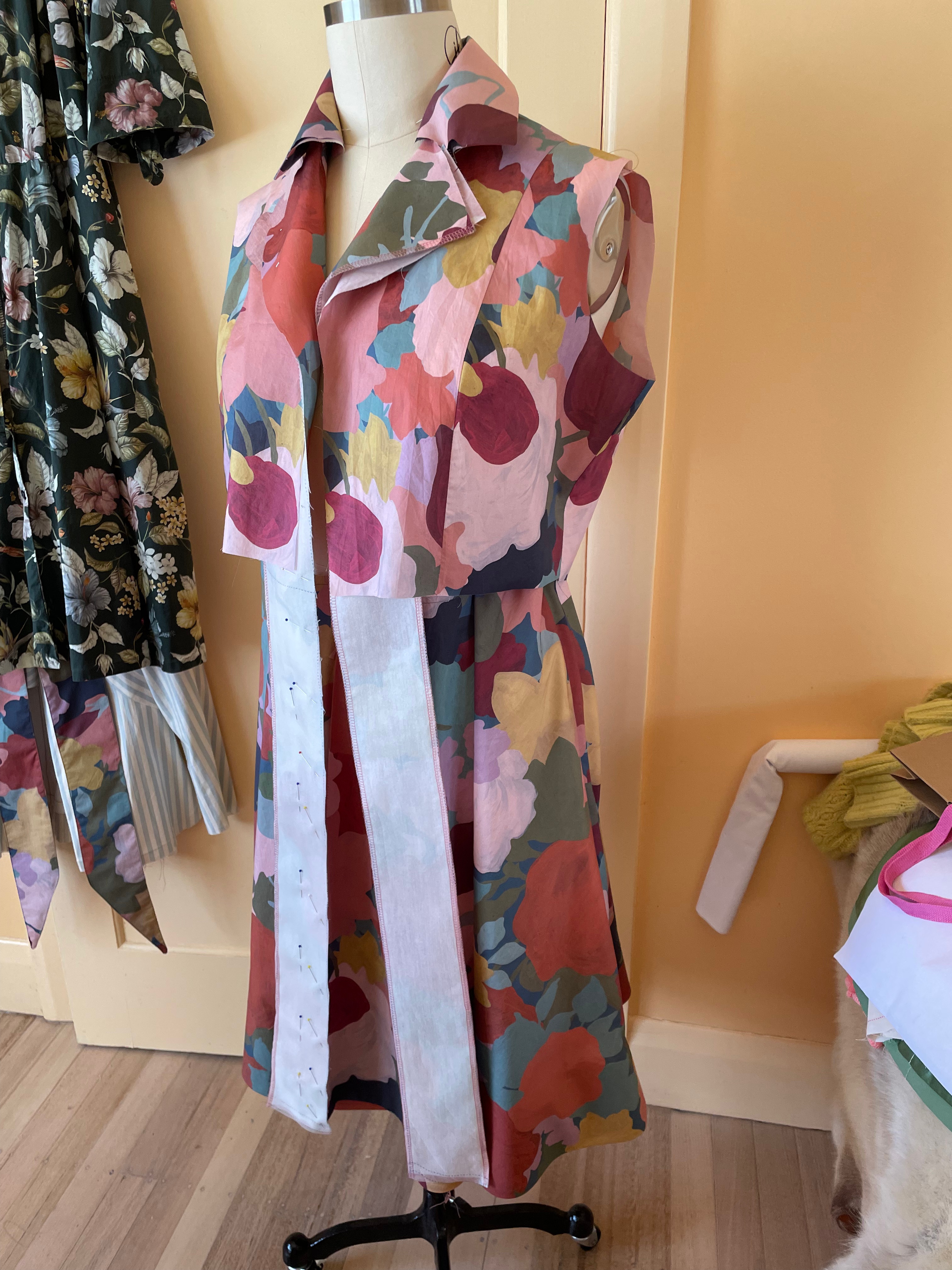 Liberty was having a sale at the time – and I picked up 4m of ‘Marina’s Garden’ and what I thought would be a co-ordinating solid pink (‘Baby Pink tana lawn’) – this ultimately felt too pale up against the patterned fabric. All up the on sale patterned fabric cost me $220, plus the use of some organza from my stash (say, $15 worth), plus covered buttons ($15) plus thread ($5) – so even with a fancy brand name fabric, DIY sewing comes in for less than purchasing something?