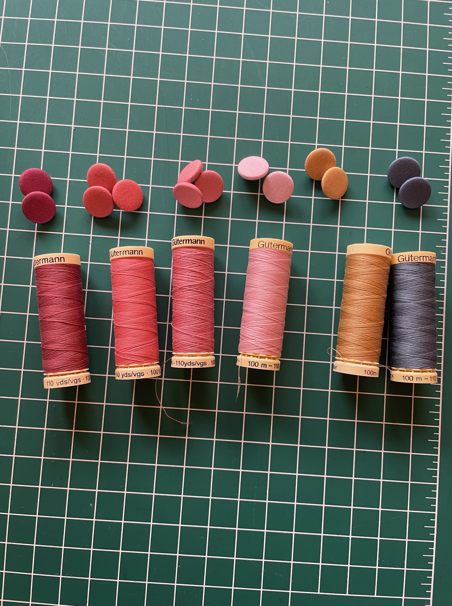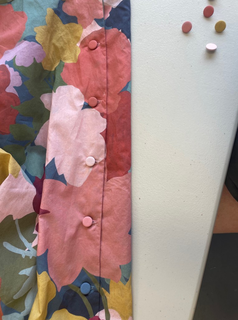 I decided it was definitely the right thing to do to have fabric covered buttons that matched the location where each button would be. So off I posted a stack of fabric and samples to ButtonMania to get them all made up! They were everything I hoped they would be, and yes I absolutely went off to buy matching thread so each button hole could #dresslikeacrayon. This feature puts a big smile on my face.