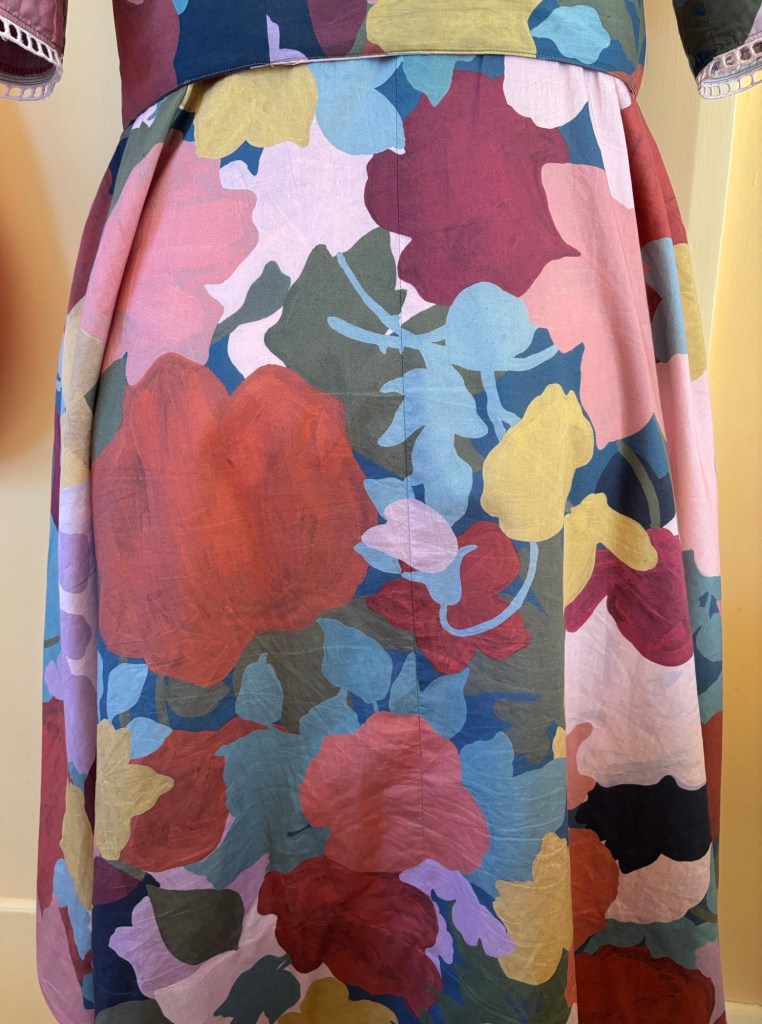 Lots of positives here – a new dress in a gorgeous riot of colours, and hopefully extended the life and wear of a much loved dress pattern as well.